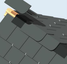 Por estas razones, se recomienda ejecutar las limas tesas y los caballetes mediante el sistema de chapa oculta y pizarras remontadas con ganchos de sujeción y atornilladas al rastrel en su parte oculta para una máxima seguridad. Con este sistema, la chapa no corre ningún riesgo de soltarse al mantenerse oculta, mientras que las pizarras remontadas que forman el caballete tampoco corren riesgo de soltarse, al estar sujetas mediante al menos dos ganchos cada una de las piezas y atornilladas al rastrel en su parte oculta.