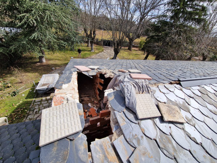 En primer lugar, ¿Qué causa las goteras en un tejado de pizarra? Las razones son diversas, pero las más comunes son las grietas en las pizarras, desplazamiento de pizarras, encuentros con chimeneas o paredes verticales mal ejecutados de origen, cercos de estanqueidad mal instalados en ventanas de tejados, limas hoyas en forma de "V", etc. y las filtraciones por el temido proceso capilar. Si bien algunas goteras son fáciles de localizar, muchas veces las raíces del problema pueden estar ocultas detrás de las tejas. Si no se identifica y repara la causa subyacente de la gotera, la reparación no será efectiva y la gotera volverá a aparecer más tarde.